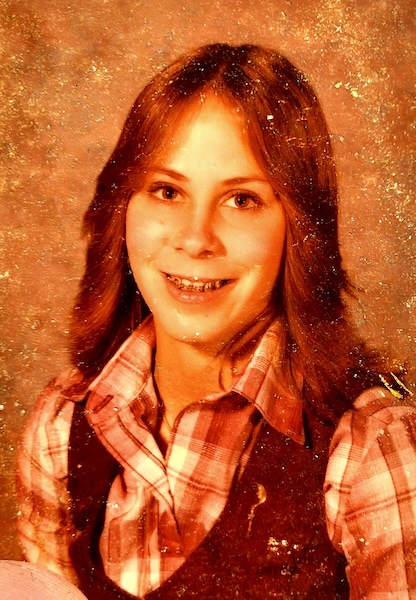 At the beginning of 1978, my family moved while I was in ninth grade. I was forced from High School into a Junior High school situation. I signed up for an easier math class, and on the first day, she walked past me to turn in a paper to the teacher's desk in the front of the room. Her perfect hair, shiny bright braces-filled smile, and big brown eyes attracted me to her immediately, but I thought she was way out of my league.